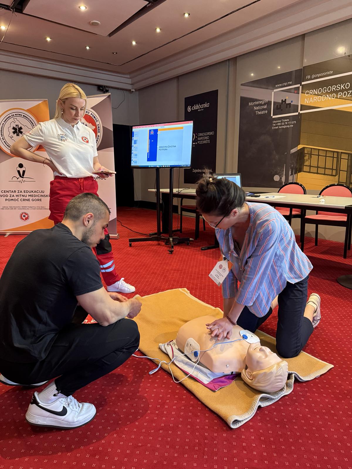 Instruktorke Edukativnog centra Zavoda za hitnu medicinsku pomoć Crne Gore održale su prvu edukaciju iz osnovnog održavanja života uz upotrebu automatskog eksternog defibrilatora (BLS/AED) i pružanja prve pomoći za zaposlene u Crnogorskom narodnom pozorištu, saopštili su iz Zavoda za hitnu medicinsku pomoć Crne Gore.